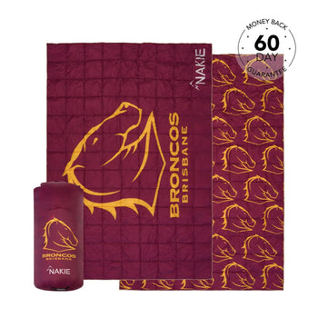 NRL Brisbane Broncos x Nakie 1 × Recycled Sand Free Beach Towel Dimensions: 160cm × 90cm Weight: 740 grams 1 × Water Proof Storage Bag Dimensio...