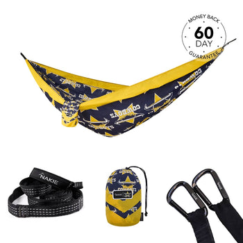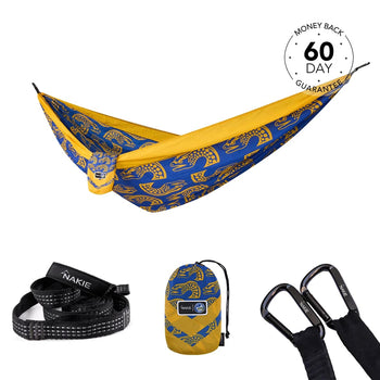 NRL Parramatta Eels x Nakie Double HammockDimensions: 3m × 1.8mWeight rating: 225kgWeight: 600g 2 × Hammock StrapsLength: 2.3m per strapWeight r...