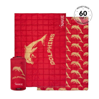 NRL Redcliffe Dolphins x Nakie Puffy Blanket - SpecificationsDimensions: 2m × 1.4m600 fill power 500 grams recycled plasticWeight: 780 gramsStora...