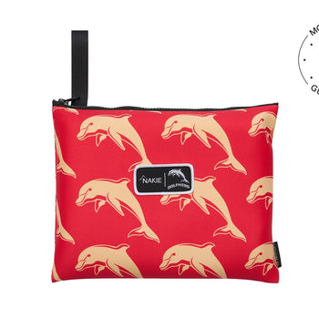 NRL Redcliffe Dolphins x Nakie 1 × Recycled Sand Free Beach Towel Dimensions: 160cm × 90cm Weight: 740 grams 1 × Water Proof Storage Bag Dimens...