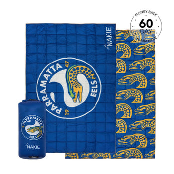 NRL Parramatta Eels x Nakie Puffy Blanket - SpecificationsDimensions: 2m × 1.4m600 fill power 500 grams recycled plasticWeight: 780 gramsStorage ...