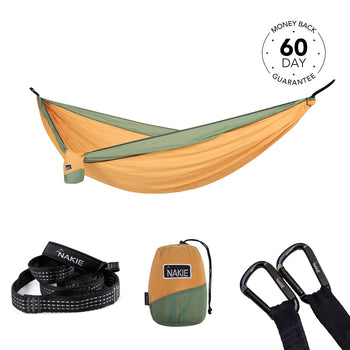 1 × Double HammockDimensions: 3m × 1.8mWeight rating: 225kgWeight: 600g 2 × Hammock StrapsLength: 3m per strapWeight rating: 450kgWeight: 130g p...