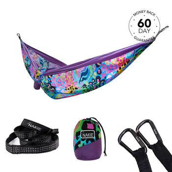 NRL Newcastle Knights x Nakie Double HammockDimensions: 3m × 1.8mWeight rating: 225kgWeight: 600g 2 × Hammock StrapsLength: 2.3m per strapWeight...