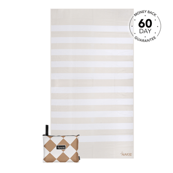 Recycled Sand Free Beach Towel Dimensions: 90cm × 45cm Weight: 180 grams Storage Bag Dimensions: 12cm × 9cm