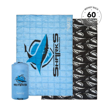 NRL Cronulla Sharks x Nakie 1 × Recycled Sand Free Beach Towel Dimensions: 160cm × 90cm Weight: 740 grams 1 × Water Proof Storage Bag Dimension...