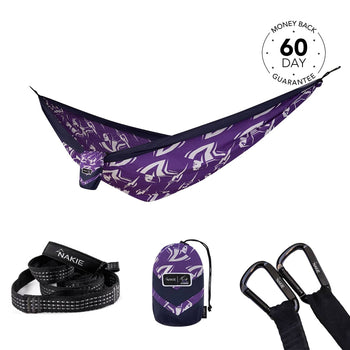 NRL Melbourne Storm x Nakie Double HammockDimensions: 3m × 1.8mWeight rating: 225kgWeight: 600g 2 × Hammock StrapsLength: 2.3m per strapWeight r...