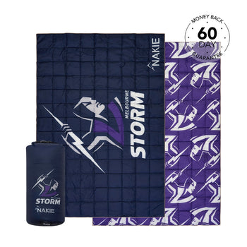 NRL Melbourne Storm x Nakie 1 × Recycled Sand Free Beach Towel Dimensions: 160cm × 90cm Weight: 740 grams 1 × Water Proof Storage Bag Dimension...