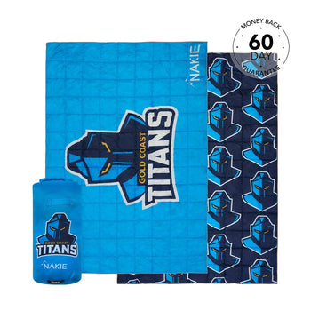 NRL Gold Coast Titans x Nakie Puffy Blanket - SpecificationsDimensions: 2m × 1.4m600 fill power 500 grams recycled plasticWeight: 780 gramsStorag...