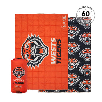 NRL Wests Tigers x Nakie Puffy Blanket - SpecificationsDimensions: 2m × 1.4m600 fill power 500 grams recycled plasticWeight: 780 gramsStorage bag...