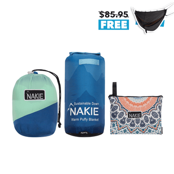 All of our Nakie beach towels come with a compact, water-resistant neoprene bag for easy storage. The Recycled Beach towel storage bag is 25cm × 20cm x 4cm. The XL storage bag is 24cm × 24cm x 9cm. The hooded towel storage bag is 22cm × 22cm x 8.5cm.