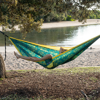 Our Hammocks are super versatile and can be used for campsite relaxation, entertaining the kids or even to sleep in. Add a puffy blanket to keep you cosy all night long and use the hands free cape clip when you’re tending to the fire. Then at the end of the trip stuff the hammock, blanket, tarp and bug net back into their stuff sacks - no annoying fights with bags that are too small!