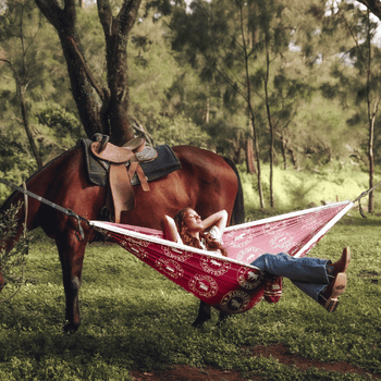 Our hammocks are 3m long by 1.8m wide making sharing your hammock an absolute dream.The extra width means you can easily fit two people and swing in the breeze together! If you are on the taller size you will love the extra width as it makes sure you can have a comfy solo sleep in our recycled hammocks!