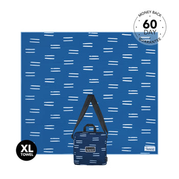 Beach Blankets Nakie's towels have a unique feel due to their material blend. They combine the smoothness of polyamide with the practicality of recycled plastic, making them comfy while still being great at repelling sand, lightweight and quick dry. Many of our customers are surprised at how good and soft they feel, read our reviews to see what others think!