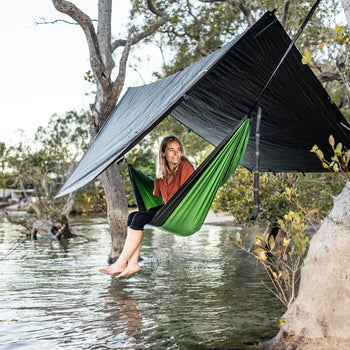 When we created the Nakie hammock combos we focussed on producing an ultra light hammock, bug net and tarp to be used for hiking, camping, or any adventure. We wanted a hammock set up that was extremely portable and easy use. Each hammock bug net and tarp combo weighs just 2.5kg and is nice and compact, easily fitting in your backpack. Set up is quick and easy in fact it can take less than 10 minutes to set up and be relaxing in a Nakie hammock, bug net and tarp combo.